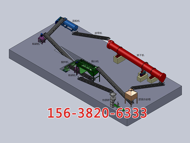 氯化鉀、一銨、尿素等基礎原料投入攪拌鍋中,經攪拌后,進入原料皮帶。由原料皮帶進入破碎機,經破碎后由斗提機送入料倉,再經變頻皮帶,進入刮板機傳送至原料斗提機進入轉鼓造粒機和篩出的返料混合,物料在造粒機中借助機體的旋轉,形成機械型固體物料的流動床。物料按運動軌跡運動,在擠壓、摩擦力的作用下團聚成球形顆粒,在轉鼓造粒的滾動床中,還埋有蒸汽噴管,向物料噴加適量蒸汽、氣氨輔助造粒,在向物料供熱的同時,...